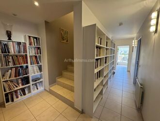 Elle ouvre sur un grand séjour/salle-à-manger avec climatisation réversible, et une cuisine contemporaine indépendante, avec son cellier, entièrement équipée aux prestations exceptionnelles, l'ensemble donnant, par de larges baies vitrées, sur la grande terrasse.
